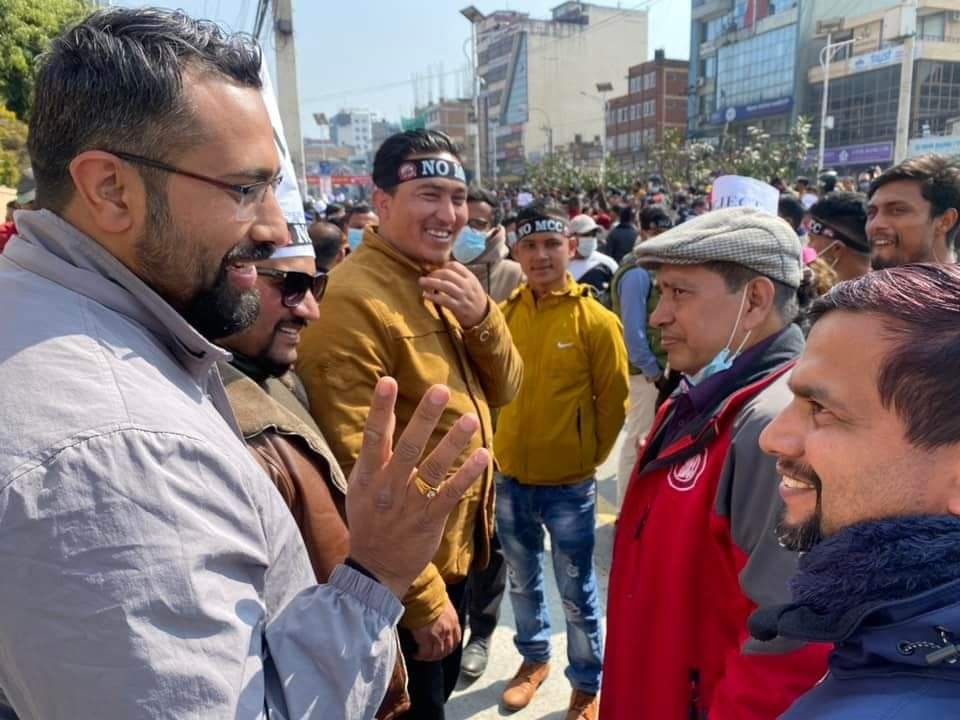काठमाडौं । नेकपा माओवादी केन्द्रका नेता तथा पूर्व परराष्ट्रमन्त्री नारायणकाजी श्रेष्ठ एमसीसीविरुद्ध सडकमा उत्रिएका छन् । प्रतिनिधिसभाको बुधबारको बैठकमा एमसीसी सम्झौता अनुमोदन प्रस्ताव पेस गरिने भएपछि अहिले नयाँबानेश्वरमा भइरहेको विरोध प्रदर्शनमा नेता श्रेष्ठ पनि सहभागी भएका हुन् ।