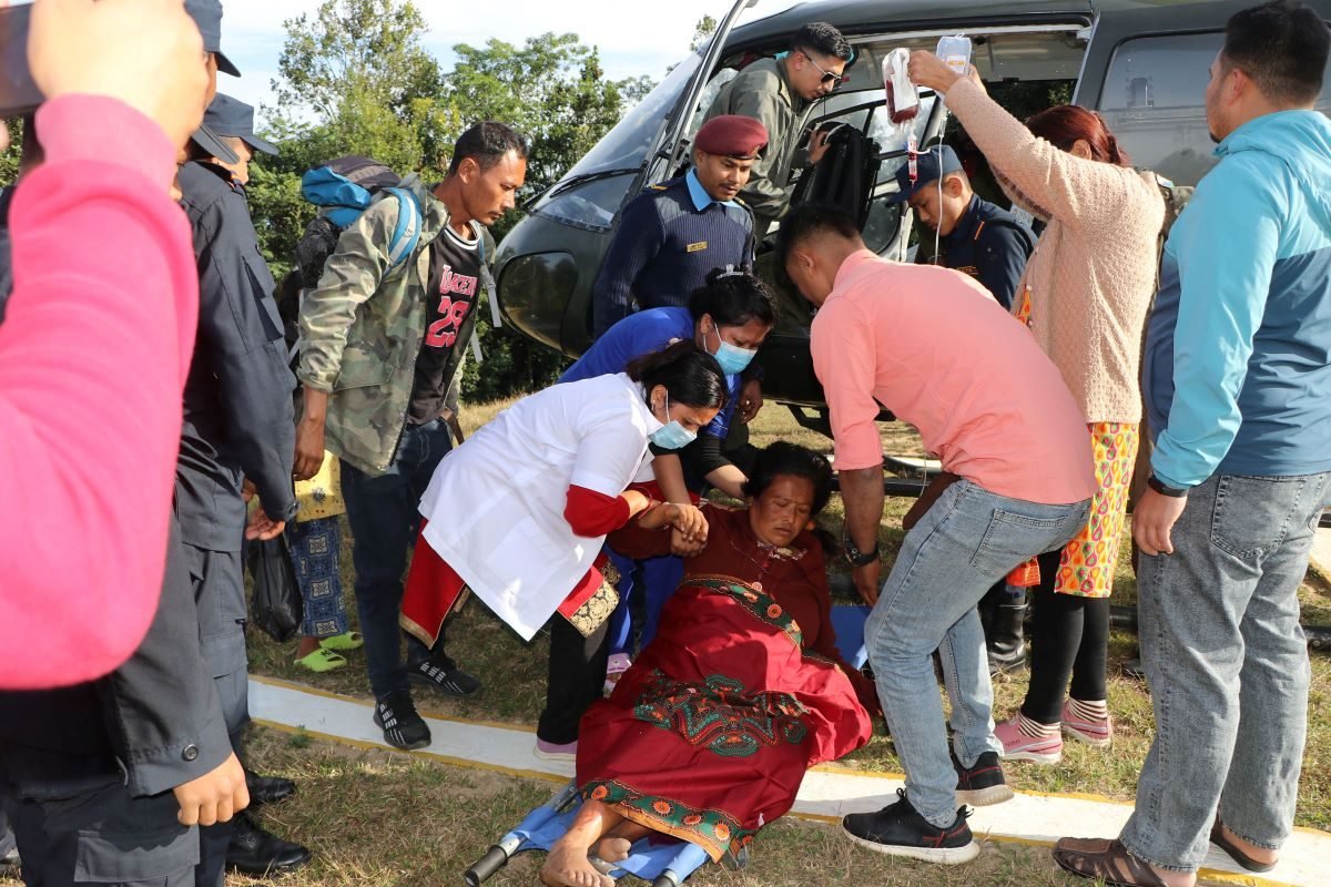 गर्भवती सार्कीको जिल्ला अस्पतालमा स्वास्थ्य परीक्षण गरिएको थियो । गर्भवती सार्कीको स्वास्थ्य अवस्था जटिल हुँदै गएका कारण थप उपचारका लागि हवाई उद्धार काठमाडौँ पठाइएको हो । गर्भवती सार्कीको अत्यधिक रक्तश्राव र उच्च रक्तचापसमेत देखिएको मेडिकल अधिकृत श्रीवालले बताउनुभयो ।