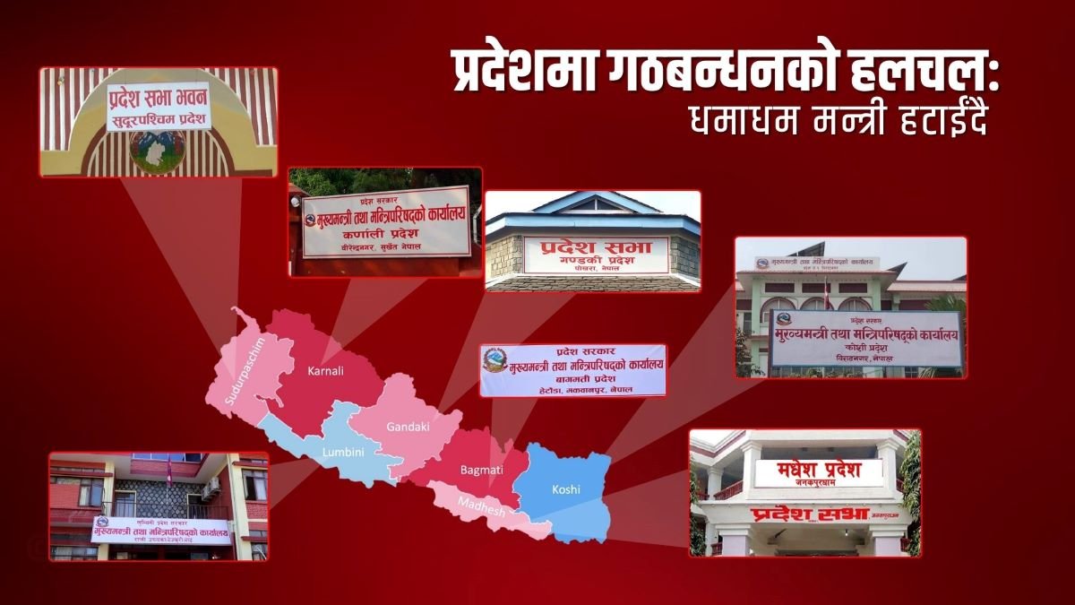 काठमाडौं । केन्द्र सरकारको सत्ता गठबन्धन परिवर्तन भएर नयाँ सरकार बन्दै गर्दा प्रदेशहरुमा यसको प्रत्यक्ष असर देखिन थालेको छ । प्रदेश सभाको अंकगणित अनुसार मुख्यमन्त्रीहरुले नयाँ गठबन्धनमा सहभागी दलका प्रतिनिधिहरुलाई सरकारबाट धामधम हटाउन थालेका छन् । केही प्रदेशमा मुख्यमन्त्रीकै राजिनामा माग्न थालिएको छ ।